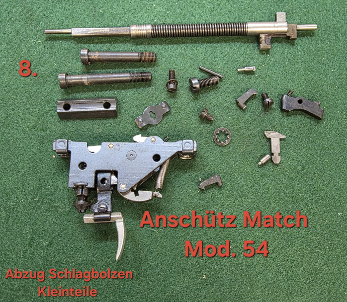 8.) Konvolut Anschütz Mod. 54 Match KK Gewehr .22 Abzug Schlagbolzen Kleinteile Schrauben