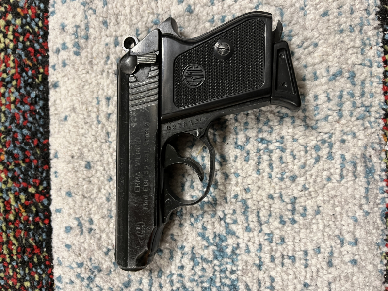 Zum Verkauf steht eine Schreckschuss Pistole der Firma Erma. Typ EGP 55 mit der PTB 399. Beschussjahr 1986. Gebrauchsspuren vorhanden. Wurde getestet und funktioniert ohne Probleme. Wird mit Magazin geliefert. Auf Wunsch kann ein Scan der Anleitung versendet werden.