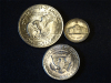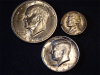 Biete 3 US Silbermünzen an. 1 Dollar "Eisenhower" von 1971, Gewicht 24,5 g und somit ca. 2 Gramm schwerer als der Kupfer-Nickel-Dollar aus dem gleichen Jahr. 1/2 Dollar "Kennedy" von 1968, 11,5 g und 5 Cent von 1943, 5 g. Der Versand ist für 1,80 € als Großbrief unversichert möglich. Auf Wunsch und bei Übernahme der Kosten auch versicherter Versand. Bieter aus dem Ausland bitte Kosten erfragen.