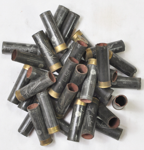 Sie bieten auf ca. 30 Stück leere abgeschossene Schrotpatronen-Hülsen der Marke Hubertus, hergestellt vom VEB Sprengstoffwerke 1 in Schönebeck.