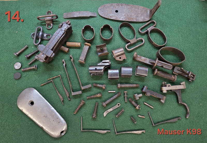 Überwiegend Mauser K98 Teile, welche Typen genau, erkennen die Spezialisten sicher sehr leicht.