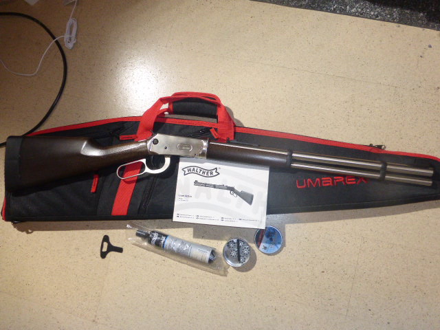 Ich verkaufe ein sehr gut erhaltenes CO2 Luftgewehr der Marke Walther Mod. Lever Action. Das Kaliber ist 4,5 mm Diabolo. Das Gewehr ist im Stainless-Look und hat einen sehr dunklen Schaft. Der Schlüssel, eine CO2 Flasche, die originale Beschreibung sowie 5 Wechseltrommeln mit Lader und eine passende Gewehrtasche sind ebenfalls Gegenstand der Auktion.