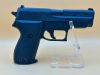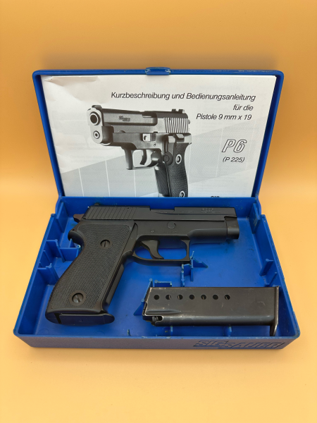 Anmerkung: Behördenbeschuss. Diese Waffe war Eigentum der Bundeszollverwaltung und wurde erst 2023 dem freien Markt zugeführt. Es handelt sich hierbei um eine spezielle Dienstpistole der Bundeszollverwaltung, welche ausschließlich an Kräfte ausgegeben wurde, die als solche nicht erkannt werden sollten. Im Gegensatz zu den gewöhnlichen etwa 14.000 ehemaligen Dienstpistolen dieser Art trägt diese daher keine Eigentumskennzeichnung („BZV“) und wurde entsprechend der zivilen Variante als P225 anstatt als P6 gemarkt. Auch der für die Dienstpistolen gewöhnliche Hahnsporn fehlt hier. In dieser Ausführung wohl äußerst selten zu finden.