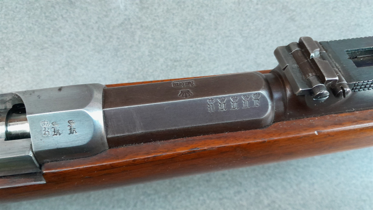 Truppenstempel 16.R.R.233. Ich vermute 16. Bayrisches Reserve Infanterieregiment, Waffe Nr. 233. Sehr gut erhaltenes Gewehr, Lauf gut, siehe Bilder. Ich halte die Waffe für durchaus schussfähig.