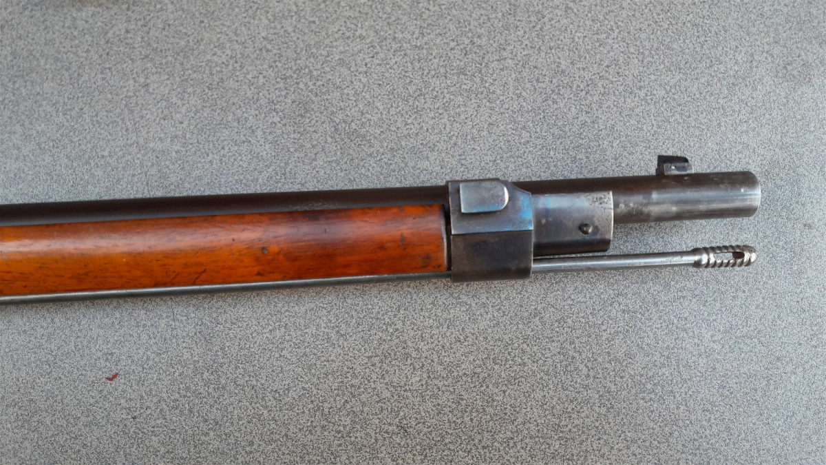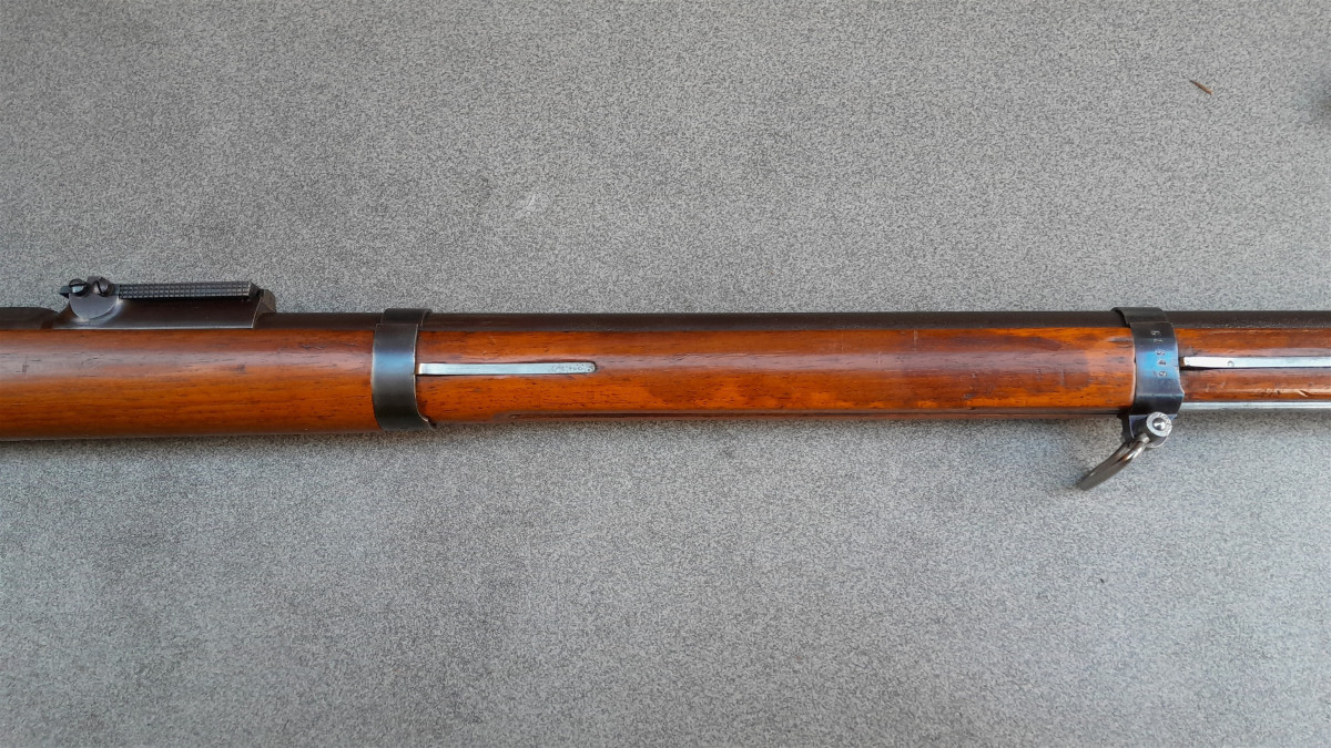 Sie bieten auf einen nummerngleiches bayrisches Infanteriegerwehr M/71, das ich von einem Sammlerkollegen übernommen habe. Hersteller Waffenfabrik Amberg, Baujahr und Ausgabe an die Truppe 1878. Kaliber 11.15x60R.