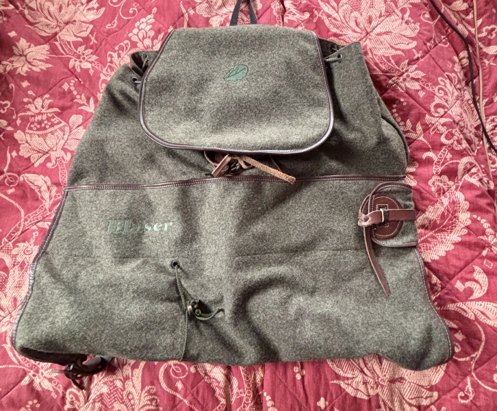 Neuwertiger und sehr gesuchter original Blaser Flüster Rucksack , mit den beiden integrierten Gewehrtaschen für den Lauf und den Schaft . Patronenhalter unter dem Deckel ! MAßE jeweils ungedehnt Breite unten ca. 63cm / Höhe ca. 55cm ohne den Deckel und die Tiefe ca. 30cm und mehr ! Lediglich kleinste Lagerspuren ! Schon lange nicht mehr erhältlich ! ++++++