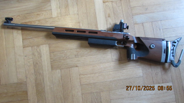 Backe verstellbar, verstellbare Schaftkappe mit Haken, verstellbarer Feinabzug, Hämmerli Diopter und Lochkorn, UIT Schiene mit Block, gültiger Beschuss von 1988. Wir behalten uns vor, den Artikel zum Versand zu Zerlegen bzw. Anbauteile abzubauen.