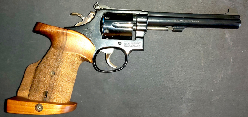 Der Originalgriff wurde durch einen Matchgriff, vermutlich von Nill, mit verstellbarer Handballenauflage ersetzt, aber der Orginalgriff liegt bei.