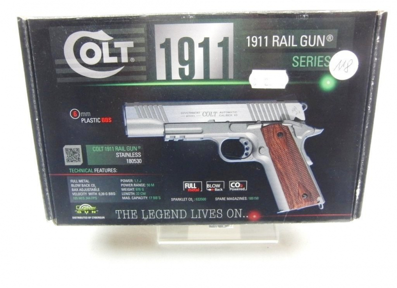 Airsoft Pistole Co2, Colt 1911 Rail Gun, Full Metall, Blowback, 6mmBB neuwertig in OVP