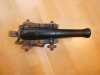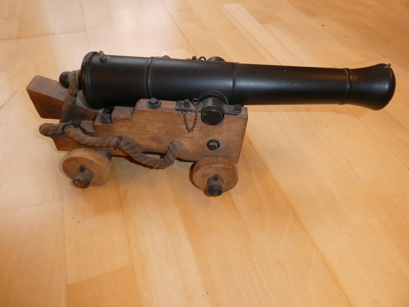 Ich versteigere hier den Nachbau eines Schiffgeschützes im Kaliber .69 glatt. Hab sie vor vielen Jahren mal geschenkt bekommen, jetzt verstaubt sie nur im Regal. Einmal haben wir damit geschossen. Daher gibt es ein paar Gebrauchsspuren. Es ist ein Piston montiert so dass man keine Lunte benötigt und mit einem Hämmerchen auslösen kann. Soweit ich mich entsinne hat das ganz gut funktioniert. Das Teil ist echt schwer und massiv. Länge ü.A. ca. 40 cm, Gewicht ca. 3 Kg.