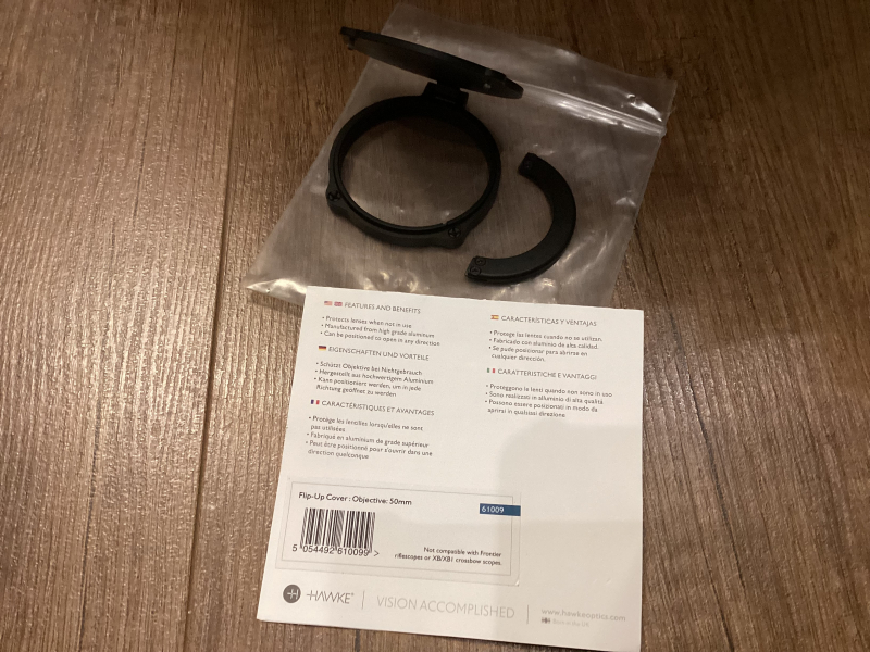 Verkauft wird eine HAWKE Zielfernrohr Klapplinsenabdeckungen Flip up Cover - 50mm Objektiv