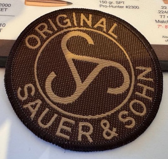 Zum Verkauf steht ein originaler Patch von Sauer & Sohn, zum Aufbügeln auf Kleidung, Caps, Taschen oder Schießausrüstung.