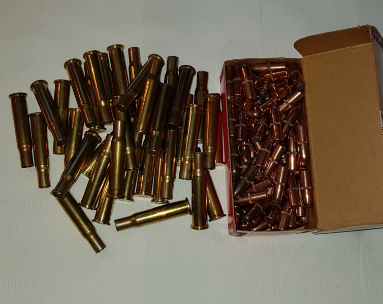 Sie bieten auf 100 Geschosse von HORNADY 170grain Flachkopf für das Kaliber 30-30 mit zur Auktion gehören 36 ladefertige Hülsen abgedreht und gezündert, Versandkosten EU=15,-€ dies ist ein Privat verkauf keine Garantie oder Rücknahme