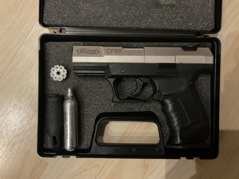 Weiter gehts mit den Walther Waffen. :) Hier die Wlther CP 99 in Bicolor. Wie auch die Walther CP 88 Competition besticht diese Waffe durch ihre Präzision und Schussleistung. Das Kunststoffgriffstück liegt super in der Hand und man ermüdet auch nicht nach 100 Schüssen. Auch die Verarbeitet ist hochwertig.