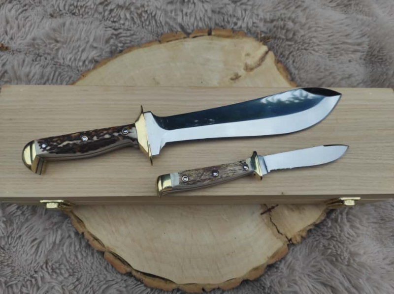 Zum Verkauf steht ein mühevoll handgertigtes Waidbesteck mit Hirschhorngriffschalen