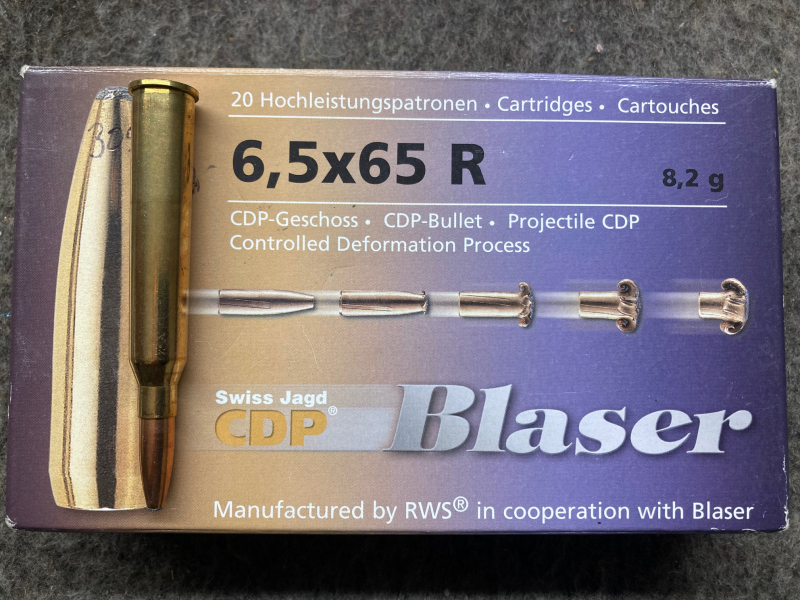 Zur Auktion kommt eine Packung 20 Schuss im Kaliber 6,5x65R mit dem 8,2g Blaser CDP Geschoss.