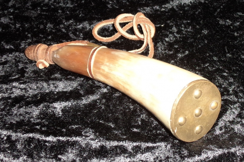 Kleines Pulverhorn, Gesamtlänge ca. 18cm, Messingkappe.