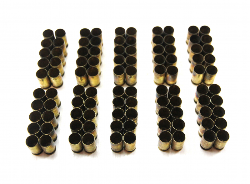 Die Fabrikmunition wurde einmalig auf einem Indoorstand verschossen, und die Hülsen werden so verkauft, wie sie aus der Waffe kamen. Um eventuell doch vorhandene Beeinträchtigungen auszugleichen lege ich ein paar mehr Hülsen dazu.