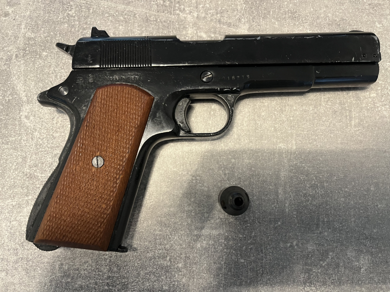 Umarex Mod. Napoleon, Kaliber 8mmK, PTB 308 mit Holzgriffschalen, Abschussbecher, 1 Magazin / 8 Schuss. Ohne Koffer.