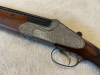 Bockdoppelflinte Merkel 303 Gebrüder Merkel Suhl Thüringen in 12/70. Nach meinem Kenntnisstand Baujahr 1958. Ventilierte Schiene, umschaltbarer Einzelabzug, werkzeuglos herausnehmbare Seitenschlosse und schöne klassische Basküle. Verschluss saugend und dicht, Schaft wurde verlängert, auf der Schiene sitzt ein Rot-Korn. Die Lauflänge über alles ist 75cm, die Mündungen sind beide ca. 17mm, das sollten beides Vollchoke sein. Absolut super Zustand!