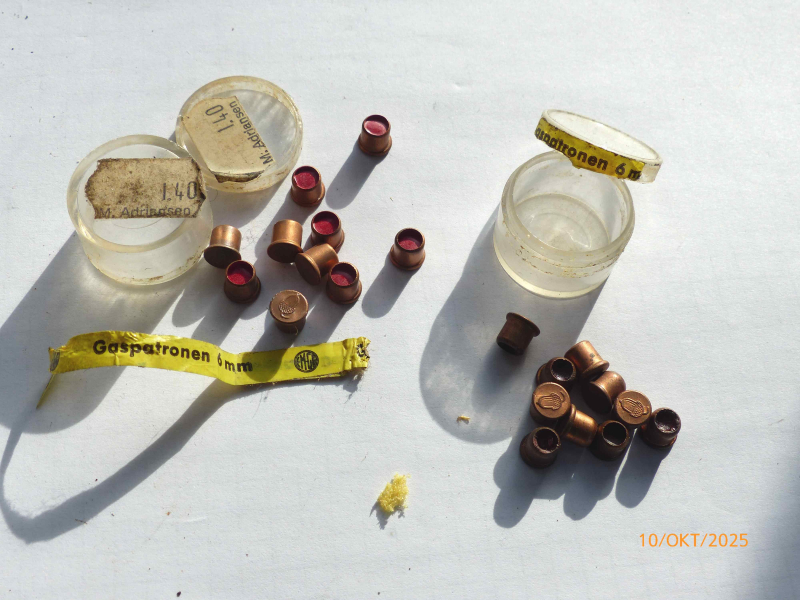 Zum Verkauf kommen hier 20 alte RWS 6 mm Flobert Gaspatronen von der Firma RWS Dynamit Nobel. Made in Germany. Gelbe Dose. Zustand (siehe die Originalfotos). Verkauf wie auf dem Bild zu entnehmen ist. Keine Garantie, Gewährleistung oder Rücknahme, da Privatverkauf. Die Versandkosten bleiben immer einmalig, egal, wie viele Auktionen Sie kaufen. Versand kann auch als versichert versendet werden, die Versandkosten würden dann 7,90 € betragen, entscheiden Sie selbst.