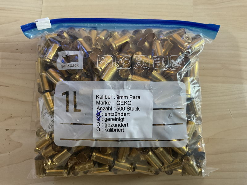 500 Stück Hülsen GEKO 9mm entzündet und gereinigt