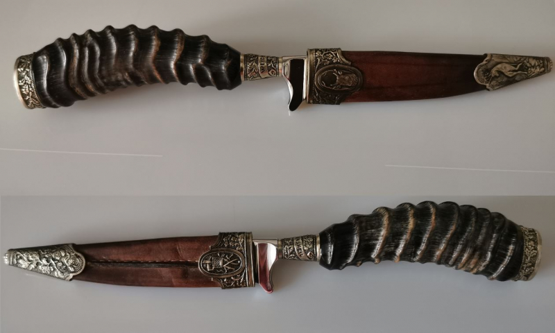 - Griff: Steinbockhorn, ca. 10,5 cm bis Kappenende