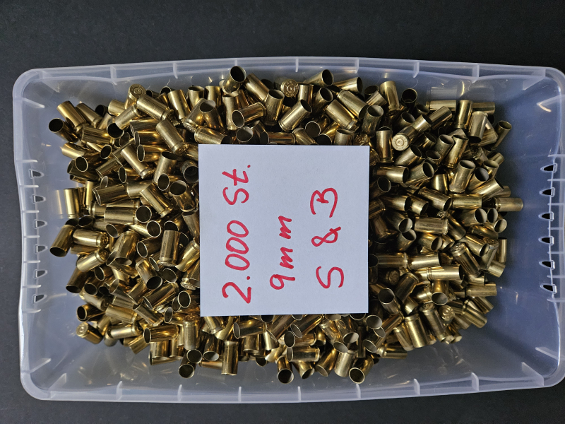 Biete 2.000 Stück S&B Hülsen im Kaliber 9 x 19. Die Hülsen sind gereinigt und können sofort und ohne Weiteres wiedergeladen werden.