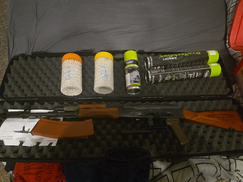 Ich möchte meine Ak47 von Wei-ETech verkaufen. Mit dabei sind passende bb's, gas, silikon spray und ein koffer. Es wurden wenn überhaupt 10 Schuss abgegeben und ist daher im neuen Zustand. Die Ak47 besteht aus hochwertigen Stahl, Aluminium, Verbundkunststoff und echtholz. Die maximale Energie beträgt 2,6 Joule. Magazinkapazität beträgt 50 Schuss, bei einem Kaliber von 6mm bb's (0,28-0,36 gramm).