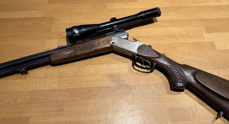 Zum Verkauf steht hier eine Blaser Bockbüchsflinte im Kaliber 12/70 und .243 Win. Der Schrotlauf ist blank, bei dem Kugellauf sind Züge und Felder scharf. Montiert ist über eine Schwenkmontage ein Zeiss Diavari-Z 2,5 - 10 x 52. Die Waffe ist in einem guten Gesamtzustand. Der Kugellauf verfügt über einen französischen Stecher.