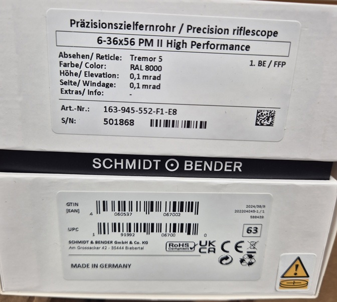 Schmidt & Bender 6-36x56 PM II High Performance LPI TREMOR5 1cm ccw DT35 MTC LT/ ST ZC CT RAL 8000