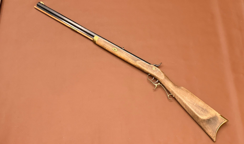 Schöne Perkussionsbüchse im Hawken-Stil aus Fertigung von Dikar (Spain). Klassischer Achtkant-/Sechskantlauf, schlichter Holzschaft mit Messingbeschlägen und deutschem Stecherabzug. Auf dem Lauf ist die Kennzeichnung „Dikar Spain .45 Cal / Black Powder Only / HAWKEN“ sichtbar, dazu eine Seriennummer (siehe Bild). Die Waffe ist voll funktionsfähig und weist Gebrauchsspuren entsprechend Alter/Benutzung auf (siehe Detailfotos).