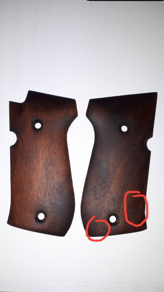 An der rechten Griffschale sind leichte Druckstellen vorhanden siehe Bild.Da dies schlecht zu fotografieren ist habe ich die Stellen eingekreist.