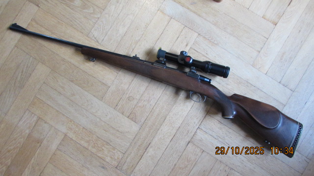 Dt. Backe, ventilierte Neoprene-Schaftkappe, Abzug mit Rückstecher, Handspanner, Kimme und Korn, Riemenbügelösen, gebogener Kammerstengel gültiger Beschuss ist vorhanden.