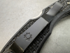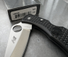 One of Spyderco's top sellers is our Delica Model. Users gravitate to it due to its sensible size, versatile shape and tested durability. It makes complete sense to plug H1 into this model, so we did, with a couple modifications. Salt I has a more rounded tip that's a bit thicker at the point. Since H1 was developed specifically for use in and around water, rounding the tip better met the requirements of cutting chores associated with boating and fishing. The Spyderco Round Hole is increased in diameter to 14mm facilitating easier access for gloved or wet hands. All inside/outside steel components (lock bar, pins and clip) have been treated making them impervious to rust and pitting. Volcano Grip texturing covers both sides of the FRN handle for friction-resistance to slipping. David Boye's locking lever dent is a standard feature that inhibits the lock from accidental release if the handle is gripped with great force. A matching black titanium pocket clip positions for left/right tip-up portability. A hole running through the hollow clip screw makes a lanyard pipe for stringing thong or cord through when using around water."