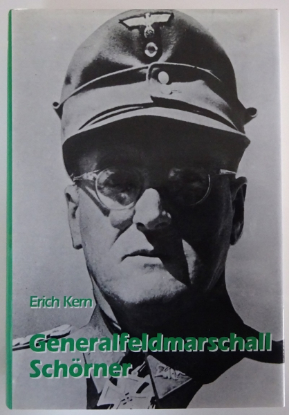 Die beste Schörner-Biographie von allen   Erich Kern - Generalfeldmarschall Schörner    DVG-Deutsche Verlagsgesellschaft Rosenheim, 4.Auflage 1993  Leinen gebunden, Schutzumschlag, 395 Seiten, mit zahlreichen s/w Fotos, Quellenverzeichnis u. Personenverzeichnis  Format 15 x 21 x 4 cm, Gewicht ca. 620 g  der weinrote Einband ist optisch makellos, jedoch leicht gelockert, der Schutzumschlag ist makellos und wirkt wie neu  der Buchblock ist sauber, helle Farbe wie das Papier im Innenteil, es fallen aber 4-5 Seiten ins Auge, die nicht sauber zu gross geschnitten sind und daher im Buchblock [oben u. an der langen Seite] ca. 1 mm "überstehen"  schade, sonst wäre dieses Buchexemplar nahezu perfekt     Keine ausländischen Bieter bzw. keine ausländischen Lieferadressen   Versand als Warensendung bis 1000g mit DHL/Deutsche Post  Und nun weiterlesen im Fenster: Allgemeine Informationen des Verkäufers