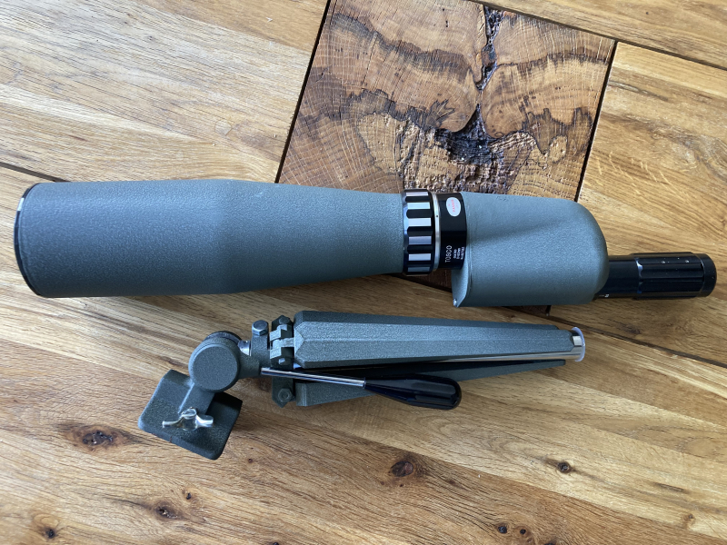 Hier kommt zur Versteigerung/Verkauf, ein in einem sehr guten Zustand ( Note 1- ) Spektiv MONO TOSCO 15-50x60 m. Dreibein-Stativ und Linsenschutz. Die Linse ist klar unde alle Einstellungen funktionieren einwandfrei. Es wurde nie benutzt, lag nur in einer Versand-Kiste von Frankonia Würzburg. Zwei, kaum ins Auge fallender helle, leichte Kratzer, seitlich auf der grünen Beschichtung. Stativ mit drei Füßen und verstellbar in der Höhe um ca. 22 cm. Das Drehgelenk funktioniert einwandfrei, rundum und Höhen verstellbar, der Hebel zum Drehen ist auch dabei. Beide Teile sind olivgrün matt beschichtet. Privatverkauf. DHL-Versand innerhalb Deutschland.