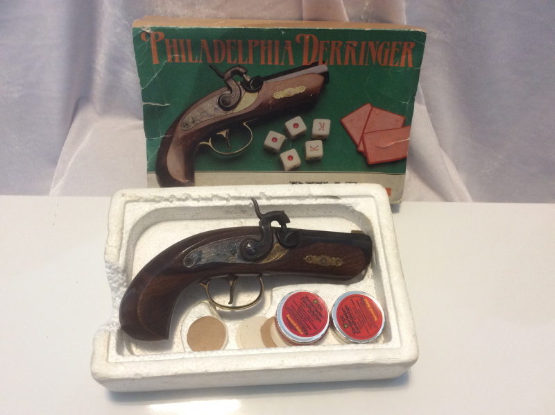 Zum Verkauf kommt hier diese Vorderlader Pistole Philadelphia Derringer Kaliber 45 im Orginalkarton und Zündhütchen. Siehe Fotos. Da privat Verkauf keine Garantie und Rücknahme des Artikels. Versand außerhalb Deutschlands nur auf Anfrage.