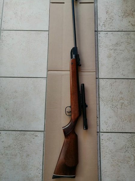 Diana Luftgewehr Mod. 36 . Sehr guter Zustand siehe Bilder. Keine Kratzer , Dellen oder nur einen Hauch von Flugrost. Druck sehr gut, durschlägt die Kidney Bohnen Dose ,aufgesetzter Schuss mit noch viel Restenergie. ZF ist 4x 15