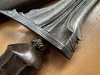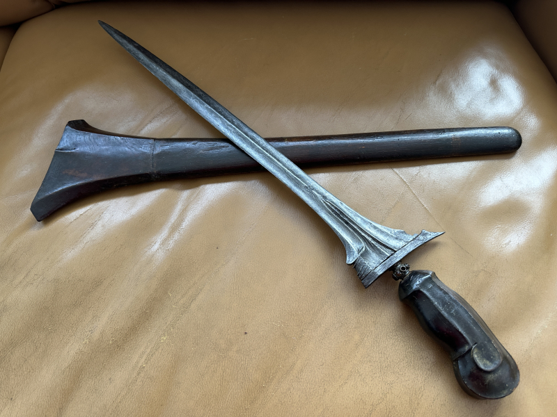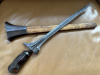 Einmalige Gelegenheit !Sammlerstück in schönem Erhaltungszustand und so ganz selten! Echte Damastklinge,partiell oberflächliche Flecken,gute,originale stabile Substanz.Vermutlich Unikat.Länge 60 cm in der Scheide.Die Bilder als Beschreibung beachten.Von privat ab 1€ ohne Rücknahme.EU-Ausland Versandkosten 20€.: