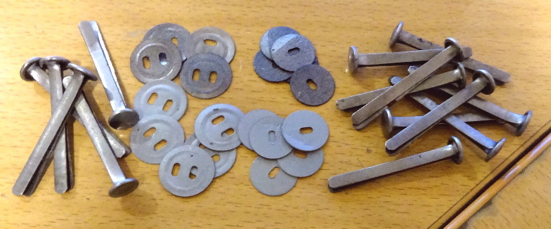 Bei den Beilagscheiben habe ich noch dazu 4 verschiedene Ausführungen. Konkret die frühe 1-Loch Ausführung bzw. auch die spätere 2-Loch Ausführung. Und diese dann auch noch dazu in jeweils 2 verschiedenen Ausführungen. Also konkret in Eisen mit Patina / Verschmutzungen wie genauso in Eisen grau lackiert. Bei der frühen 1-Loch Ausführung sind noch dazu teils auch noch frühe WaA Abnahmestempelungen vorhanden. Der Höchstbieter hat hier somit die freie Wahl welche Beilagscheiben er gerne zu den Splinten dabei hätte. Trifft der Höchstbieter keine Wahl so werde ich hier die Hälfte an 1-Loch Scheiben sowie die andere Hälfte in 2-Loch Scheiben beilegen. So ist dann bei jeder Niete auch eine Beilagscheibe dabei.
