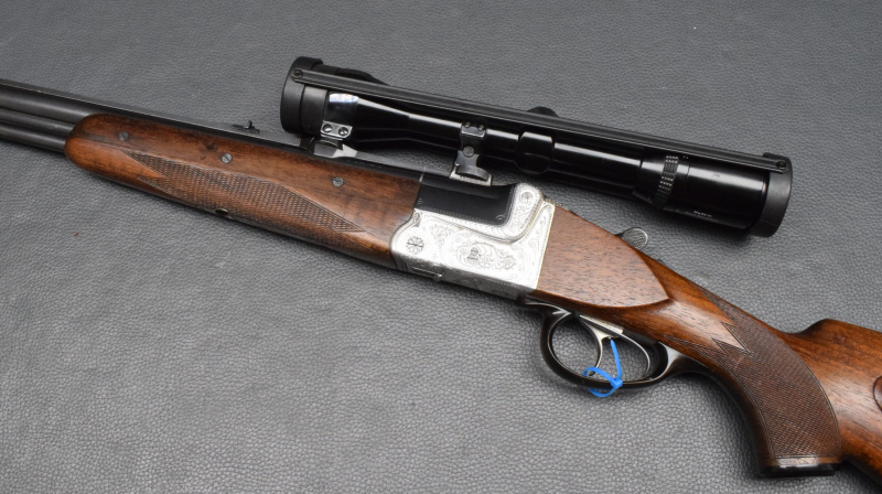 Diese exklusive Bockbüchsflinte aus den 1950er Jahren vereint handwerkliche Perfektion mit zuverlässiger Funktionalität.