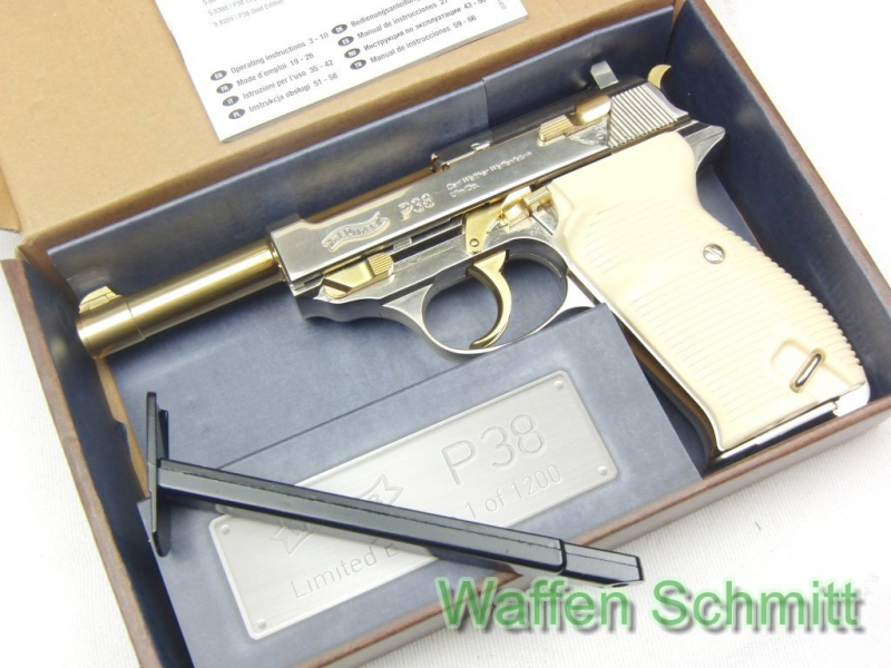 Co2 Walther P38, 4,5mmBB Blow Back, gold/nickel, Full Metall mit Reservemagazin, neuwertig