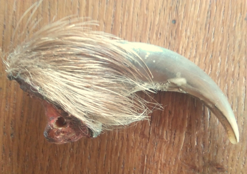 Große Bärenkralle mit einer Länge von 9 cm über den Rücken gemessen. Für diese, einzelne Bärenkralle wird
