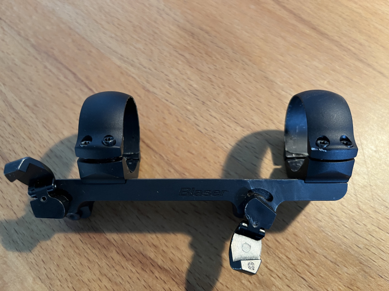 Gebrauchte Blaser Sattelmontage. Die Madenschraube am vorderen Verschluss musste abgetrennt werden, so dass kein Anschlag mehr gegeben ist.