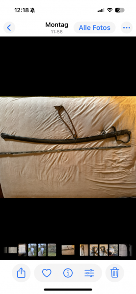 Es handelt sich um einen antiken Säbel mit deutlichen Gebrauchsspuren.