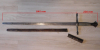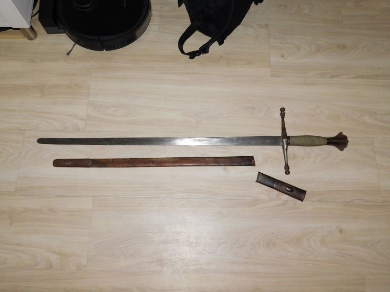Es hat einige Macken auf der Klinge und wurde bei Schaukämpfen verwendet.