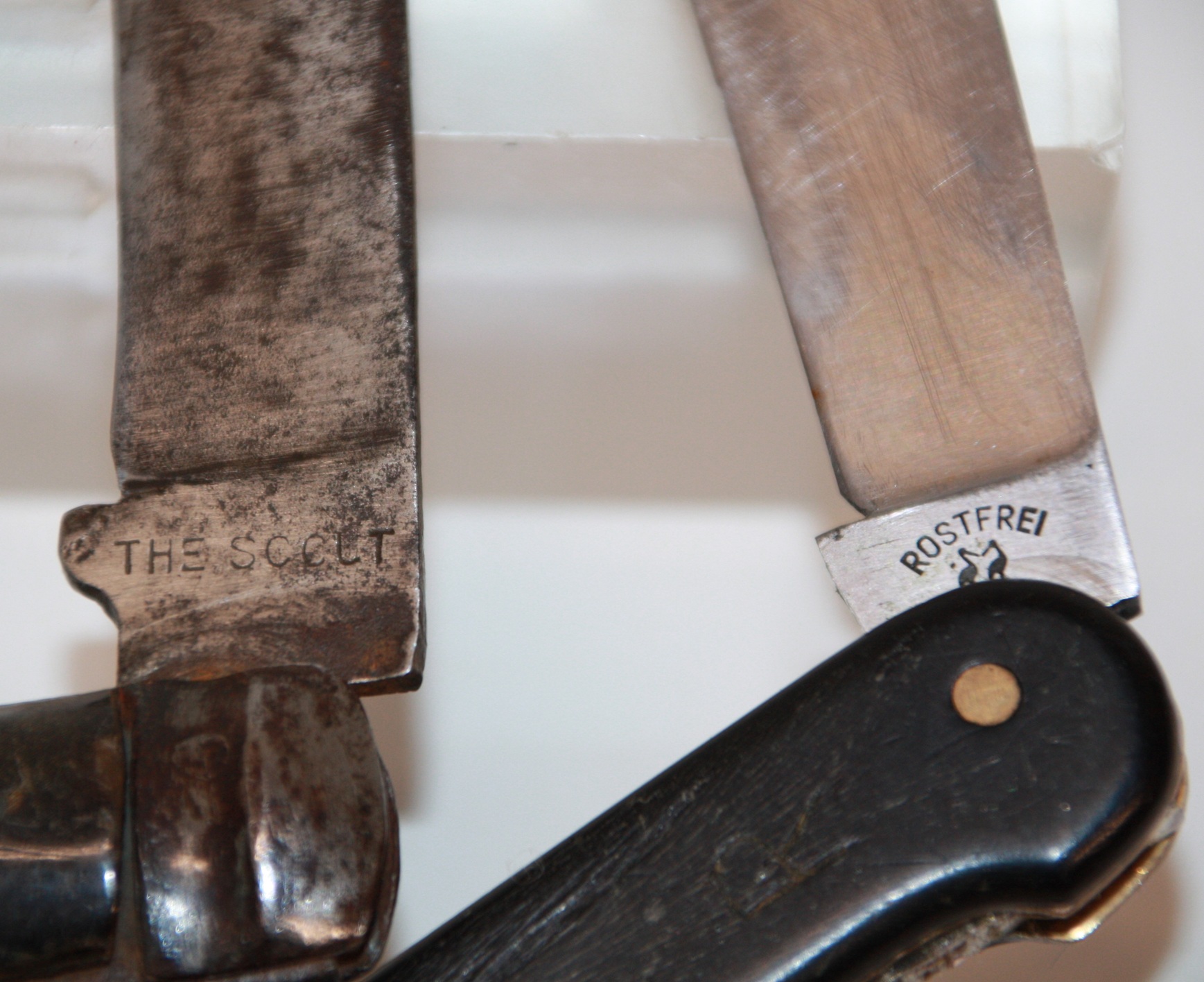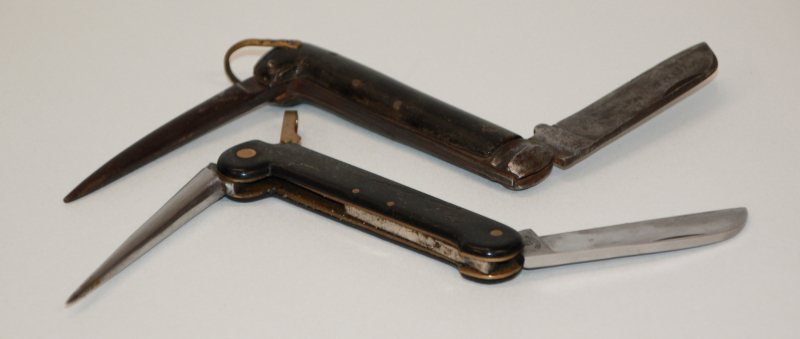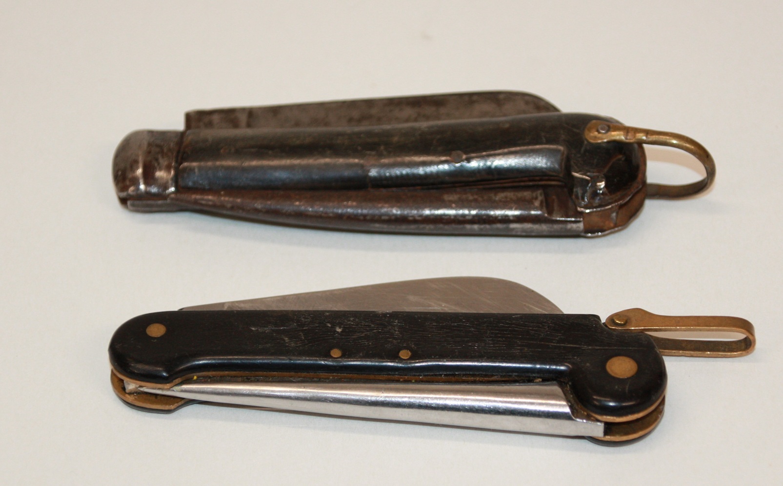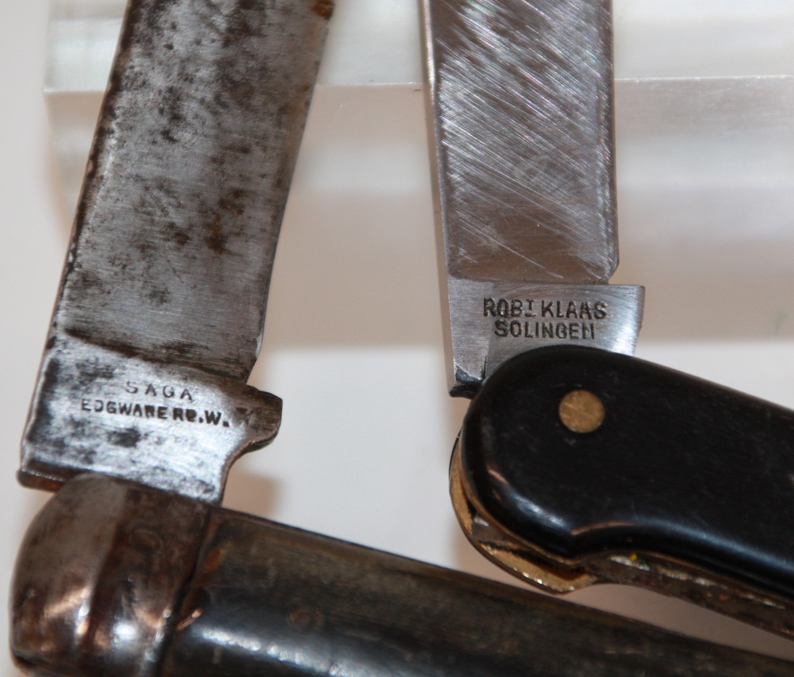 1 x Robert Klaas, Solingen. Geschlossen 11 cm, ausgeklappt mit Blatt 18 cm. Merlespir 9 cm.