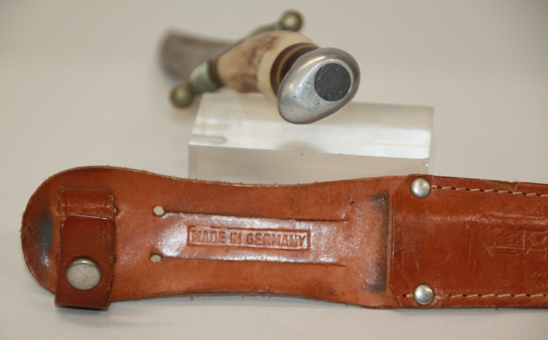Komplett mit Lederscheide, gemarkt: HUBERTUS/MADE IN GERMANY.