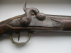 Perkussionskarabiner M1777. Von Steinschloß aptiert. Ladestock fehlt, Schaft etwas beschädigt, Beschläge unvollständig. Marke von Charleville. 112 cm.